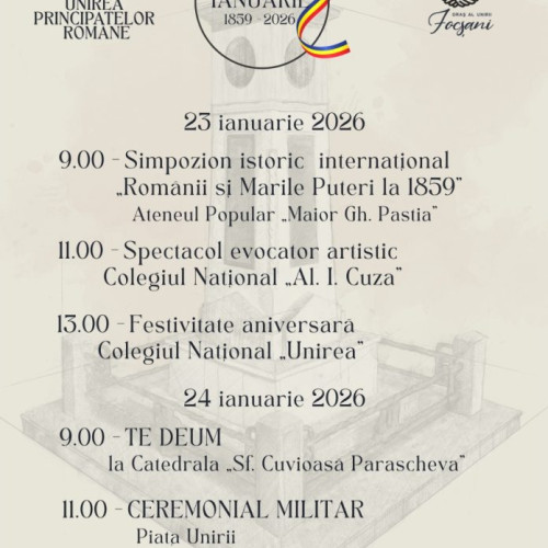 Primăria Municipiului Focșani va organiza o serie de evenimente speciale pe 23 și 24 ianuarie 2026 pentru a marca 167 de ani de la Unirea Principatelor Române, un moment esențial în istoria Statului Român modern, informează vrancea24.ro.